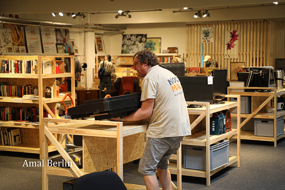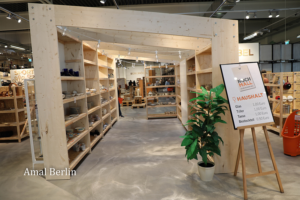 المتحدث الإعلامي لمتجر (نوخ مال – Noch Mall) التابع لشركة تنظيف برلين BSR، سيباستيان هارنيش قال إن متجرهم يعرض الأثاث والأدوات المنزلية والكهربائية المستعملة بأسعار مناسبة جدًا، وهي أشياء ما تزال تصلح للاستخدام وحالتها جيدة جدًا! وأضاف هارنيش أن متجرهم يوظف 50 شخصًا وافتتح قبل نحو أسبوع، وهناك العديد من المتاجر الأخرى المشابهة بمناطق مختلفة من المدينة. كما يمكن للأشخاص الذين يرغبون بالتخلص من أثاثهم القديم، أو الملابس والأحذية والأدوات التي لا يستعملونها، إحضارها إلى العنوان التالي: Auguste-Victoria-Allee 99، وأكد هارنيش أن بعض المعروضات في متجرهم تأتي من مكبات النفايات البرلينية، حيث تفرز الأشياء الصالحة للاستخدام وترسل لهم لإعادة بيعها بسعر متدني جدًا مقارنة بسعرها الأصلي.