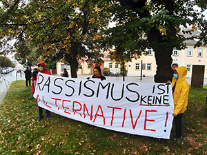 وطالب البيان الذي ألقي أثناء الوقفة بأن تتخذ ولاية تورنغن قرار الترحيب باللاجئين على غرار ما فعلته مدن و ولايات ألمانية أخرى، وجاء في البيان: “وافقت عدة ولايات، بما في ذلك سكسونيا السفلى وهامبورغ وبريمن وبرلين على توفير الحماية الفورية للأشخاص من المخيمات اليونانية، ولاية تورينغن مستعدة أيضًا لقبول مجموعة من طالبي اللجوء المعرضين للخطر! تتمتع تورينغن وبلدياتها بقدرات وكفاءات إقامة كافية لرعاية اللاجئين في البلاد لاستيعاب هؤلاء الأشخاص وتحمل المسؤولية الدولية عن اللاجئين”. المتظاهرون رفعوا شعارات مناهضة للعنصرية مثل (العنصرية ليست بديلاً، والعنصرية تقتل)! كما وزعت إحدى المشاركات التي جاءت مع طفلتها الرضيعة مراكب ورقية كتب عليها (الإنقاذ البحري لطالبي اللجوء ليس جريمة).