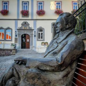 (هنا عاش جوته – هنا أحتفل جوته بآخر عيد ميلاد له – هنا كتب جوته قصيدة: أنشودة المتجول ليلاً) ومن باب التندر على هذه اللافتات المنتشرة بالمدينة، تبيع بعض محال الهدايا لافتات مكتوب عليها (جوته لم يكن هنا)! كل ذلك في إلميناو (Ilmenau)، إحدى المدن الصغيرة في ولاية تورنجين، والتي تبعد ساعة بالقطار عن عاصمة الولاية إرفورت! تشتهر إلميناو بأنها واحدة من المدن التي عاش فيها الأديب الألماني الشهير غوته وكتب بعض أعماله هناك. تنتشر صورة سائدة عن الولاية والمنطقة بنفوذ اليمين الرافض لاستقبال اللاجئين، إلا أن المدينة الصغيرة ذات الـ 36 ألف نسمة تعد مختلفة بعض الشيء، حيث فيها حالة من التعددية الثقافية تكسر هذه الصورة السائدة، إضافة لجامعة إلميناو التقنية ذات الـ 7000 آلاف طالب، قرابة 2000 منهم يأتون من خارج البلاد، وأغلب البقية من مختلف أنحاء ألمانيا، ما يساهم بوجود تعددية ثقافية فريدة!