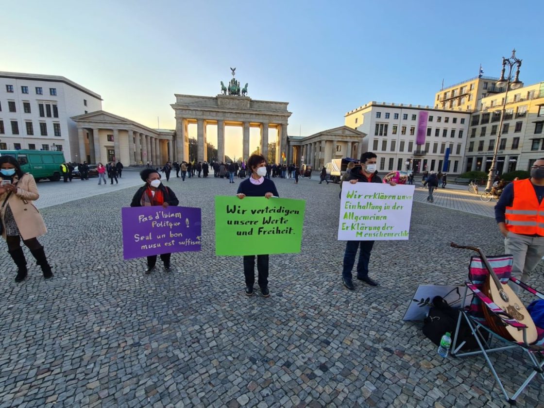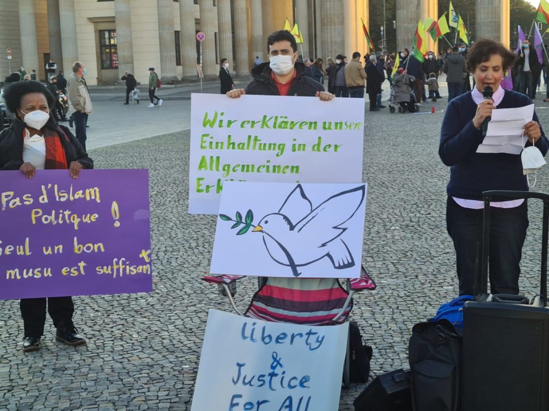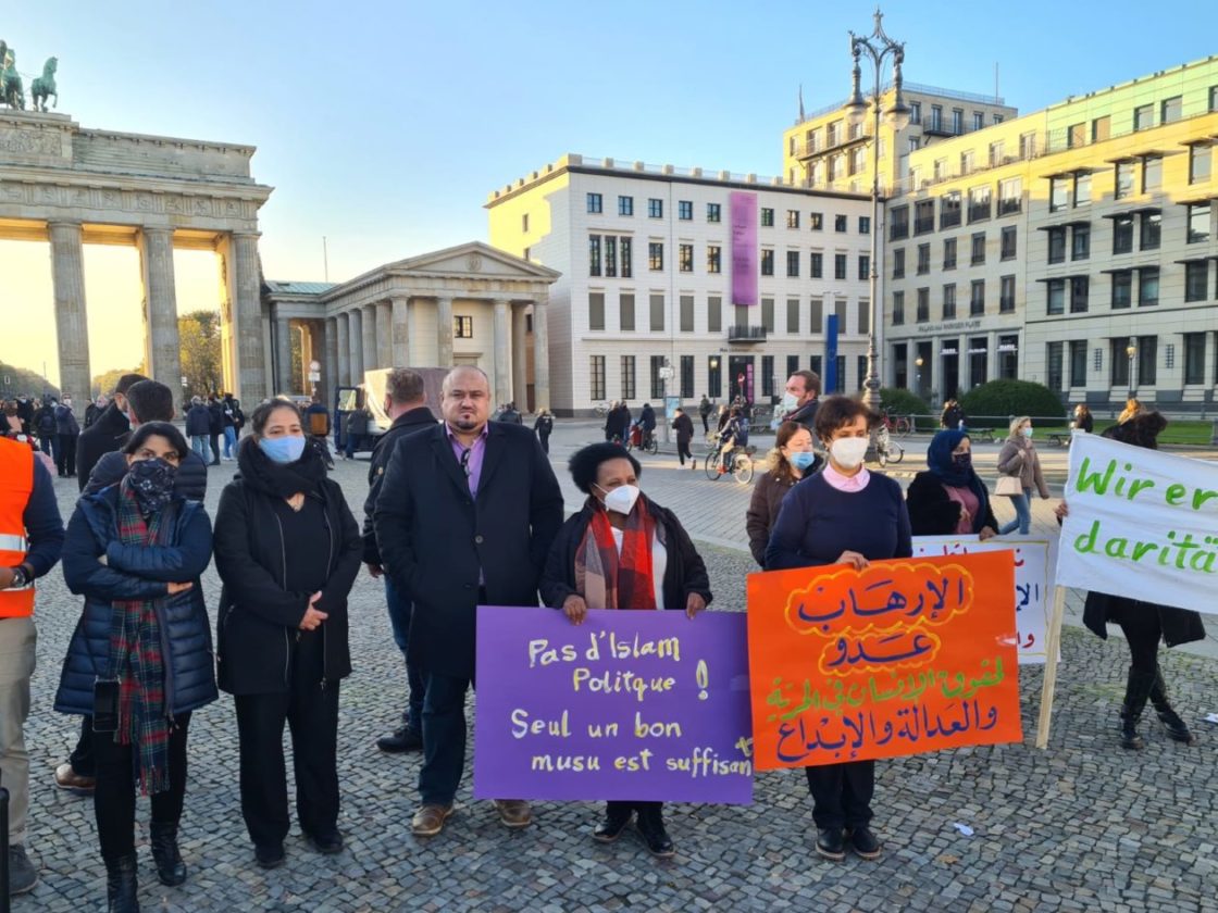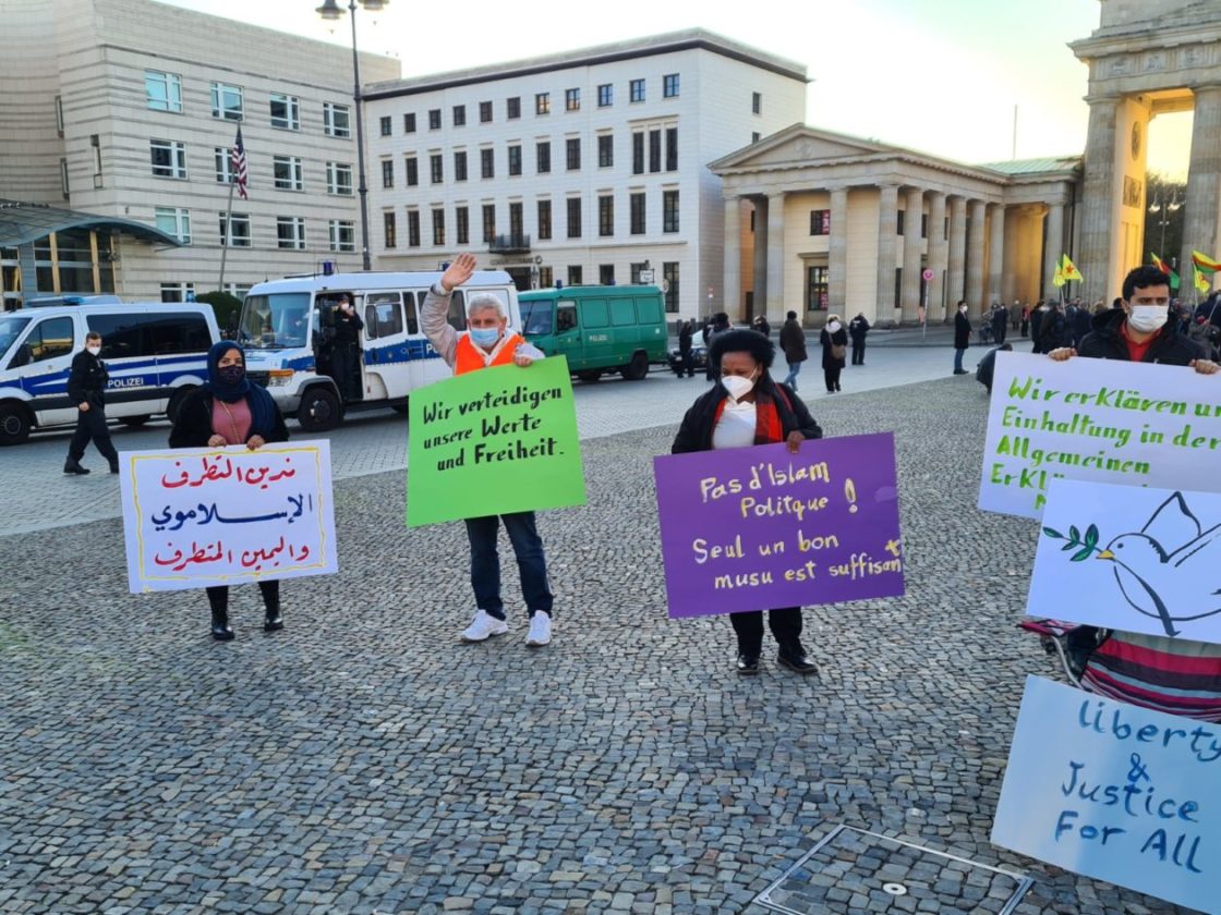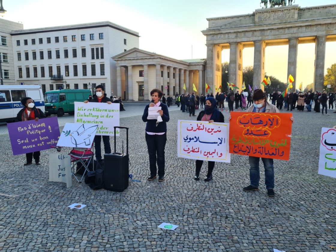 تجمع حوالي 25 شخصاً عند بوابة براندنبورغ في برلين، للتعبير عن تضامنهم مع ضحايا الإرهاب، خاصة العمليات الإرهابية الأخيرة، من مقتل المدرس الفرنسي في باريس، صموئيل باتي، إلى العملية الإرهابية التي حصلت في مدينة نيس الفرنسية، والعملية الإرهابية التي وقعت في العاصمة النمساوية فينا الإثنين الماضي! وقد ألقيت عدة كلمات باللغات العربية والإنكليزية والألمانية، تدين هذه العمليات وتعرب عن تضامنها مع أهالي الضحايا وتطالب السلطات المختصة بالعمل على اجتثاث منابع الإرهاب، كما أكدت الكلمات على أن الإرهاب يستهدف الجميع دون استثناء..