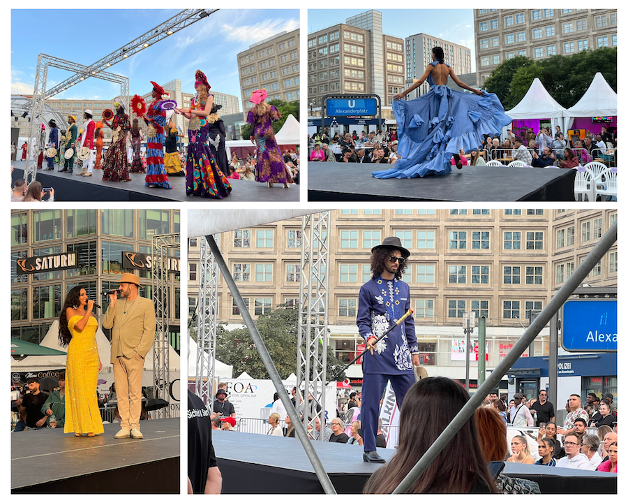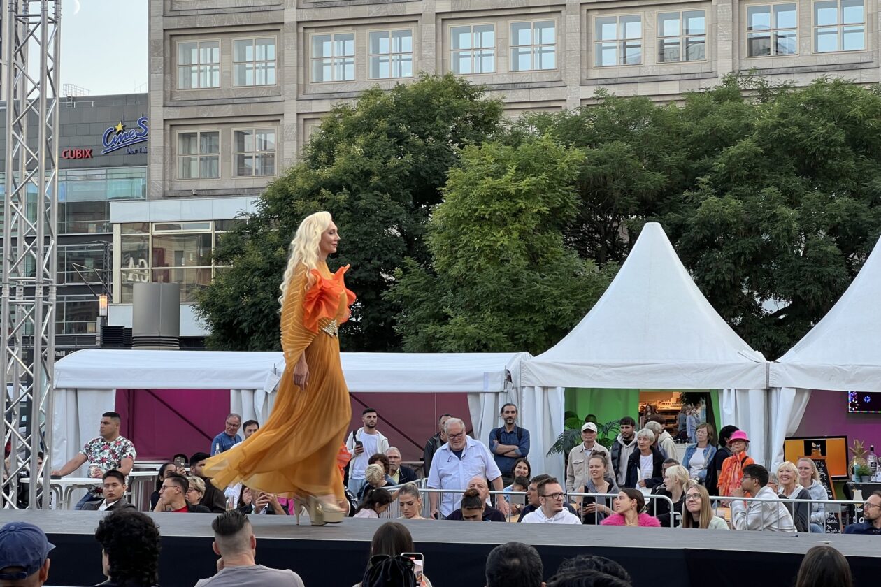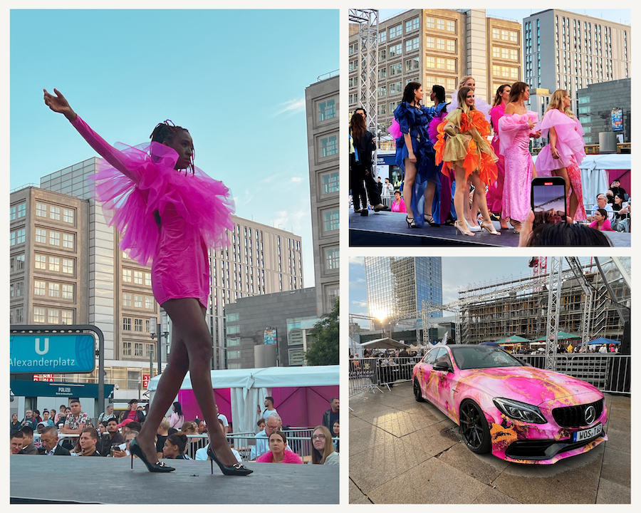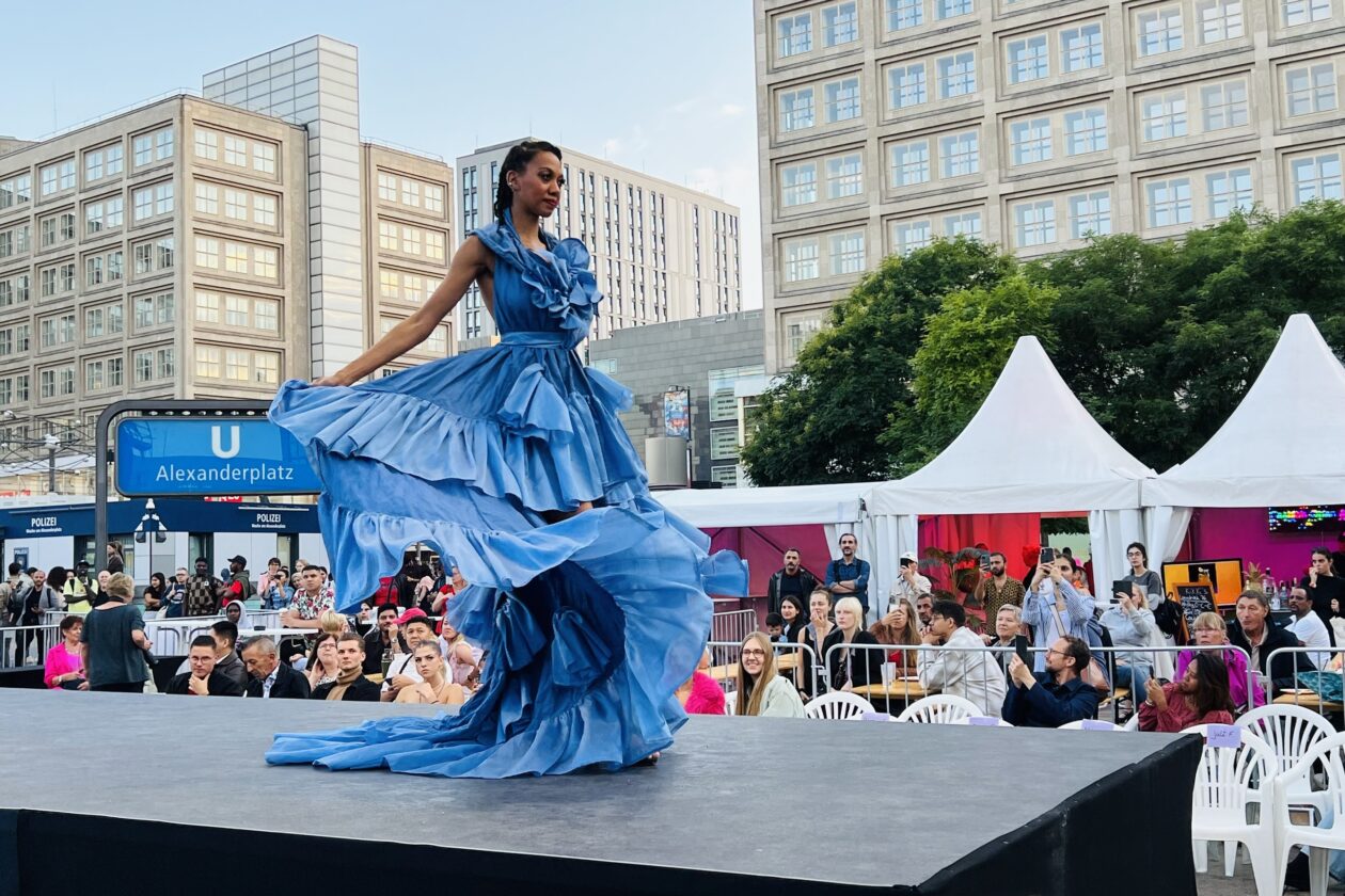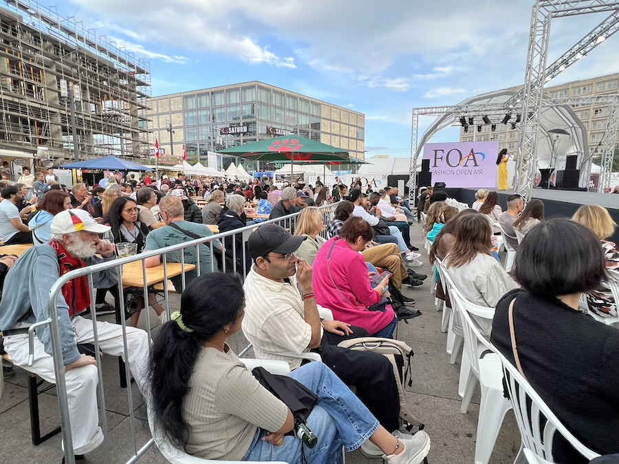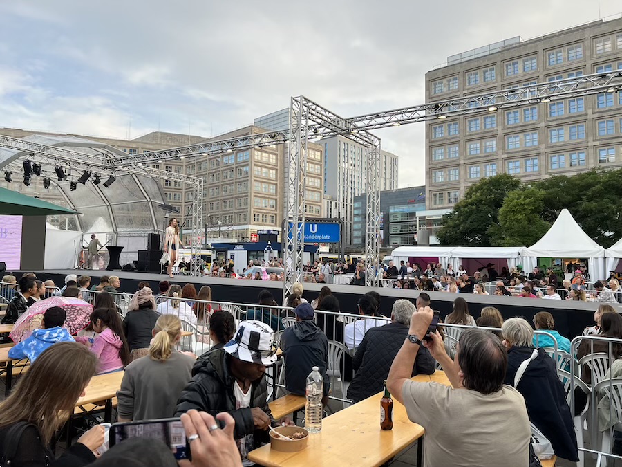 این روزها «نمایش مُد در فضای باز» برای نخستین بار در میدان الکساندر برلین برگزار شده است. برای این رویداد که تا ۷ سپتامبر ادامه دارد، چندین چادر سفید در میانه میدان برپا شده و سکوی بلندی برای راه رفتن مدلها در نظر گرفته شده است. در دو سوی سکو نیز صندلیها و نیمکتهای بسیاری چیده شدهاند. رهگذرانی که برای قدم زدن سری به این میدان میزنند یا کسانی که با پاکتهای خرید از فروشگاههای اطراف بیرون میآیند، روی همین صندلیها به تماشا مینشینند. چند قدم آنطرفتر نیز غرفههای فروش نوشیدنی و خوراکی، مثل همیشه، برپا شده است.
