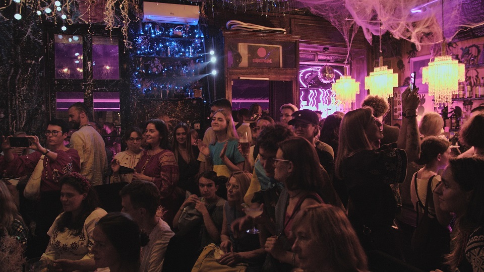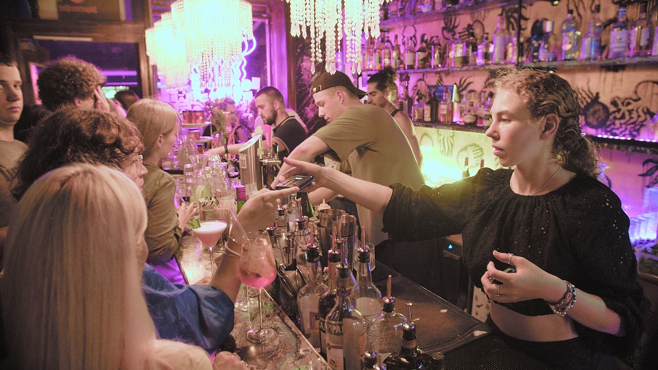 Що будете замовляти: Zelenskiy, Stefania, Kyiv Mule чи Ukrainian Sunset? Назви коктейлів в знаному барі Space Meduza патріотичні й вигадливі. І рецепти українського авторства – їх придумав тутешній бартендер Дмитро з Чернівців. Поки смакуватимете рідкою квінтесенцією українського злободення, роздивіться. Зазвичай тут нема, де проштовхнутися, тож робота офіціантів втрачає сенс. Замовляти напої доведеться самотужки. Не зручно? Радійте, що взагалі потрапили в середину, ба більше, знайшли, де сісти, – ви достоту щасливчик. Інші тупцюють назовні, нетерпляче позираючи на двері.