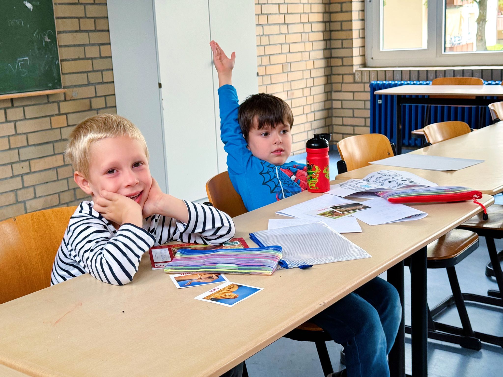 Але Данило живе деінде – в німецькому місті Фелльбах, поблизу Штутгарта. Переїхав туди з мамою майже три роки тому з нині окупованої росіянами Нової Каховки. Вікторія Черкесова розповідає “Амаль Берлін”, що її син ніколи раніше не вчив українську. Звісно, почав би у початковій школі вдома, але, як і більшість учнів у цьому класі, навряд чи отримав би таку нагоду найближчим часом. Якби не школа, яку заснувала Українська спілка Фелльбаха.