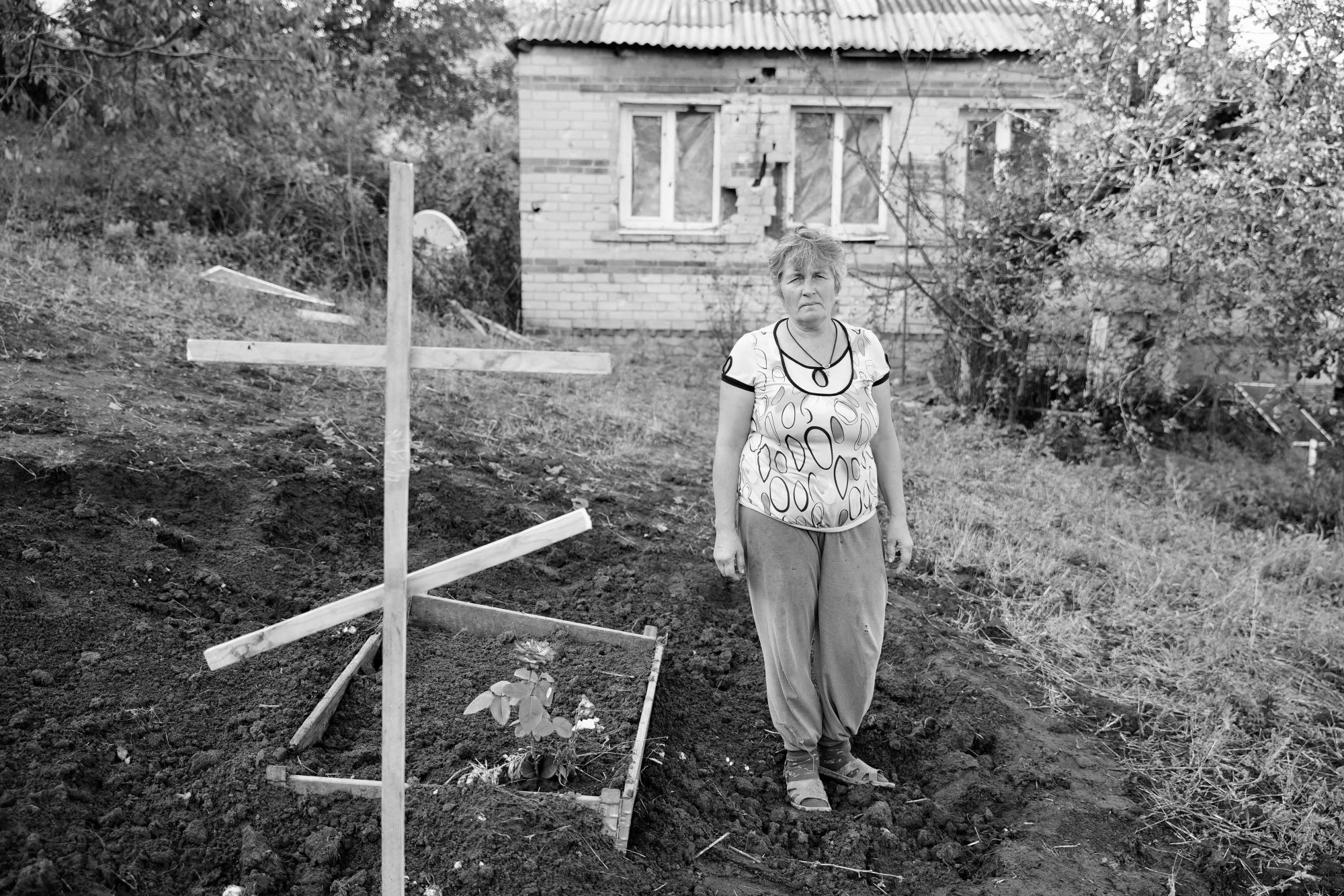 Олена поховала сина в воронці від снаряда просто перед своїм будинком. Фото – Тіль Маєр