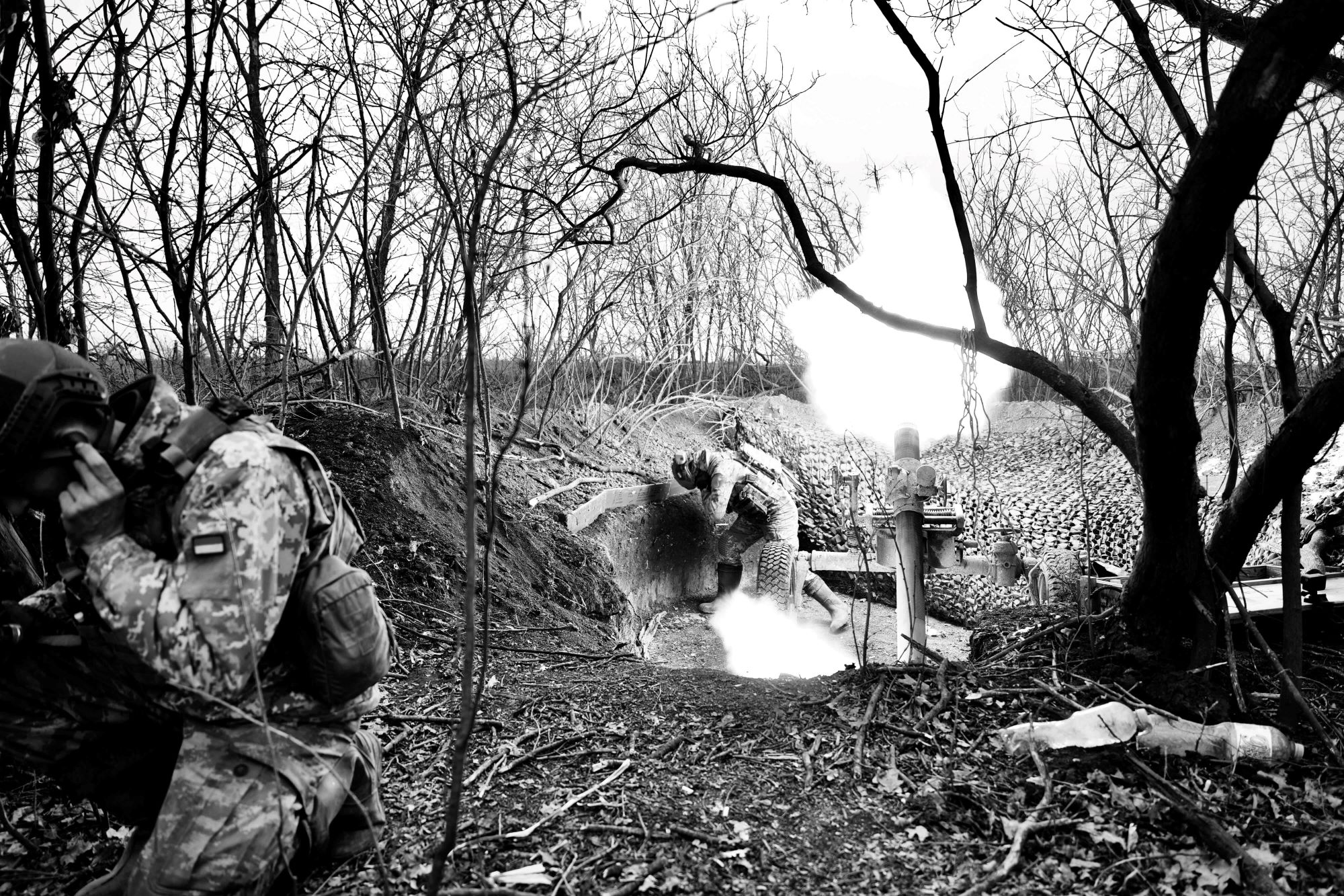 Українські військові стріляють з міномета на Донбасі. Фото – Тіль Маєр