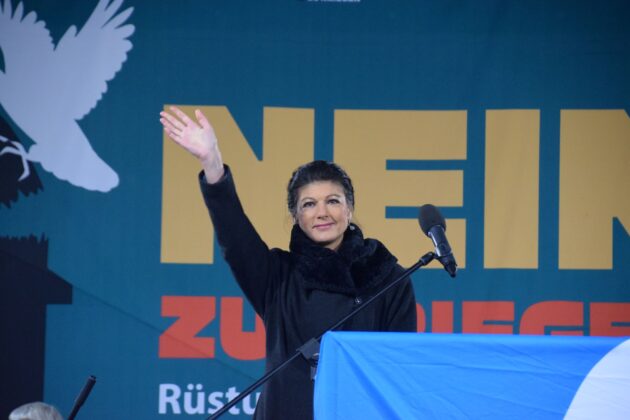 Свою партію BWS вона позиціює як “єдину партію миру” в Німеччині. При цьому план миру від Вагенкнехт такий: припинити поставки зброї в Україну. По суті, це німецький варіант формули “просто пєрєстать стрєлять”. “Коли зброя мовчить, люди не гинуть”, – зазначає політикиня. У відповідь на питання, що буде з беззбройною Україною, якщо Росія не зупиниться, Вагенкнехт лиш знизує плечима та переводить розмову в інше річище. На відміну від інших кандидатів у канцлери – Олафа Шольца, Фрідріха Мерца та Роберта Габека – політикиня жодного разу після повномасштабного російського вторгнення не відвідала Україну. Натомість вона ініціювала бойкот виступу Володимира Зеленського у Бундестазі 11 липня 2024 року. Тоді промову українського президента демонстративно проігнорували депутати від BSW та AfD.