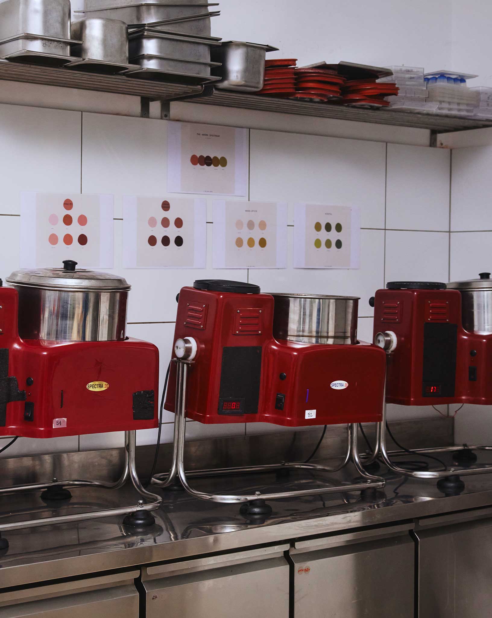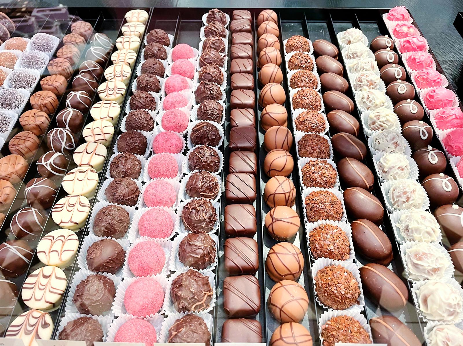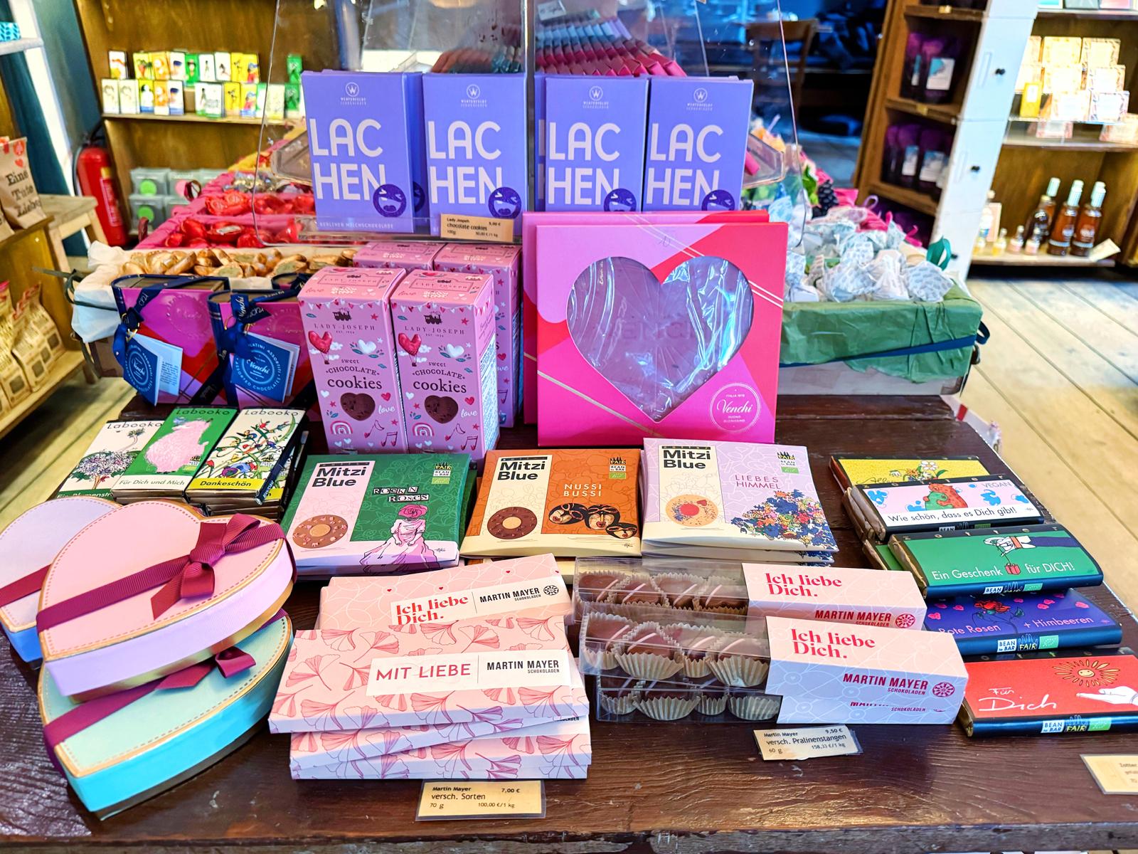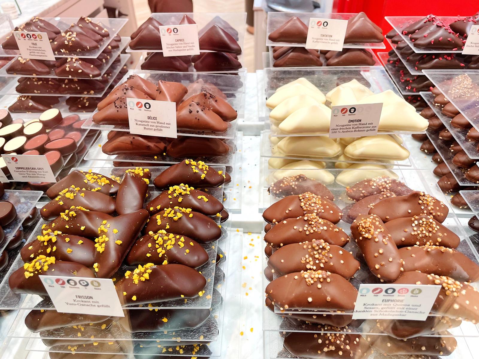 Віллі Вонці в Берліні мало б сподобатися. Тут виробляють багато європейської шоколадної класики: праліне, трюфелі, нугу та марципани, шоколад рідкий, твердий, світлий, темний, солодкий, гіркий. Але є і щось особливе – веганський шоколад, з квітковим пилком, копченим сіном, квітами кропу, фізалісом, шоколадні платівки, які можна і слухати, і їсти, шоколадні сувеніри з Бранденбурзькими воротами чи берлінськими ведмедями для друзів, солодкі серця до Дня закоханих, плитки із квітами до 8-го березня, красиві коробочки з авторськими праліне до Дня матері, гарячий шоколад із перцем та імбиром для зимових вечорів – смакота у найрізноманітніших формах до кольОру, до вибОру.