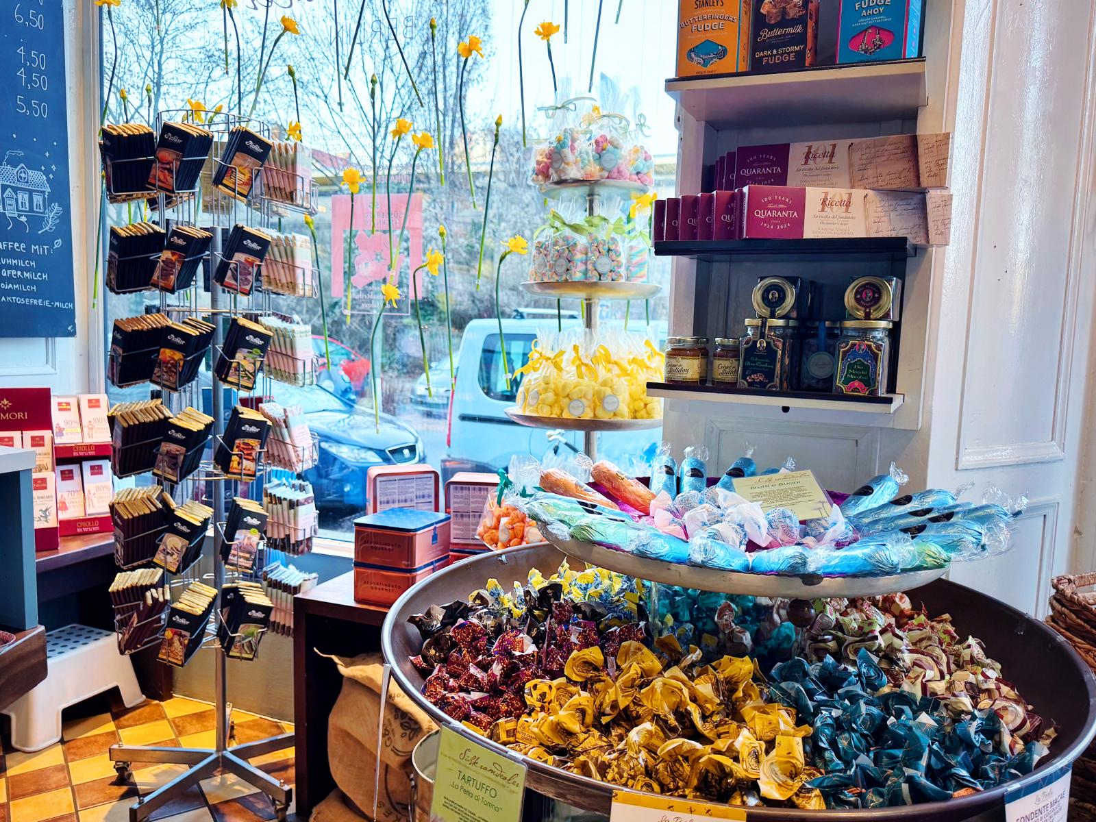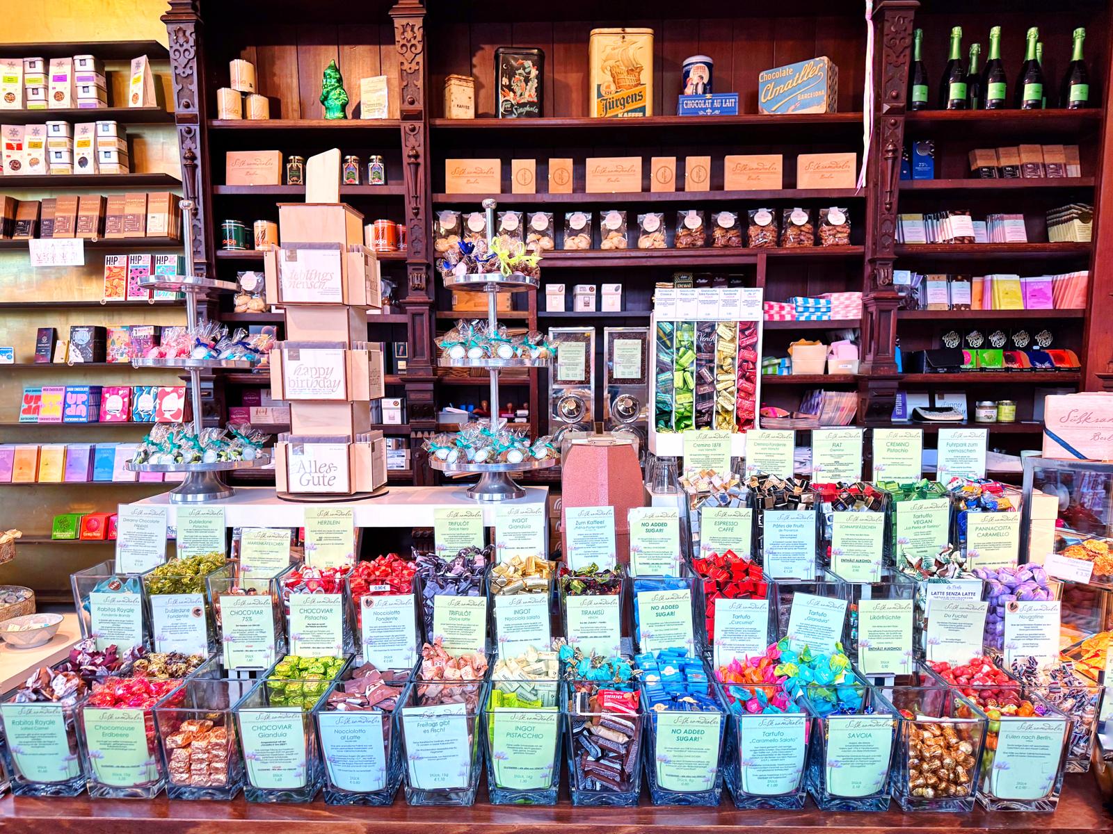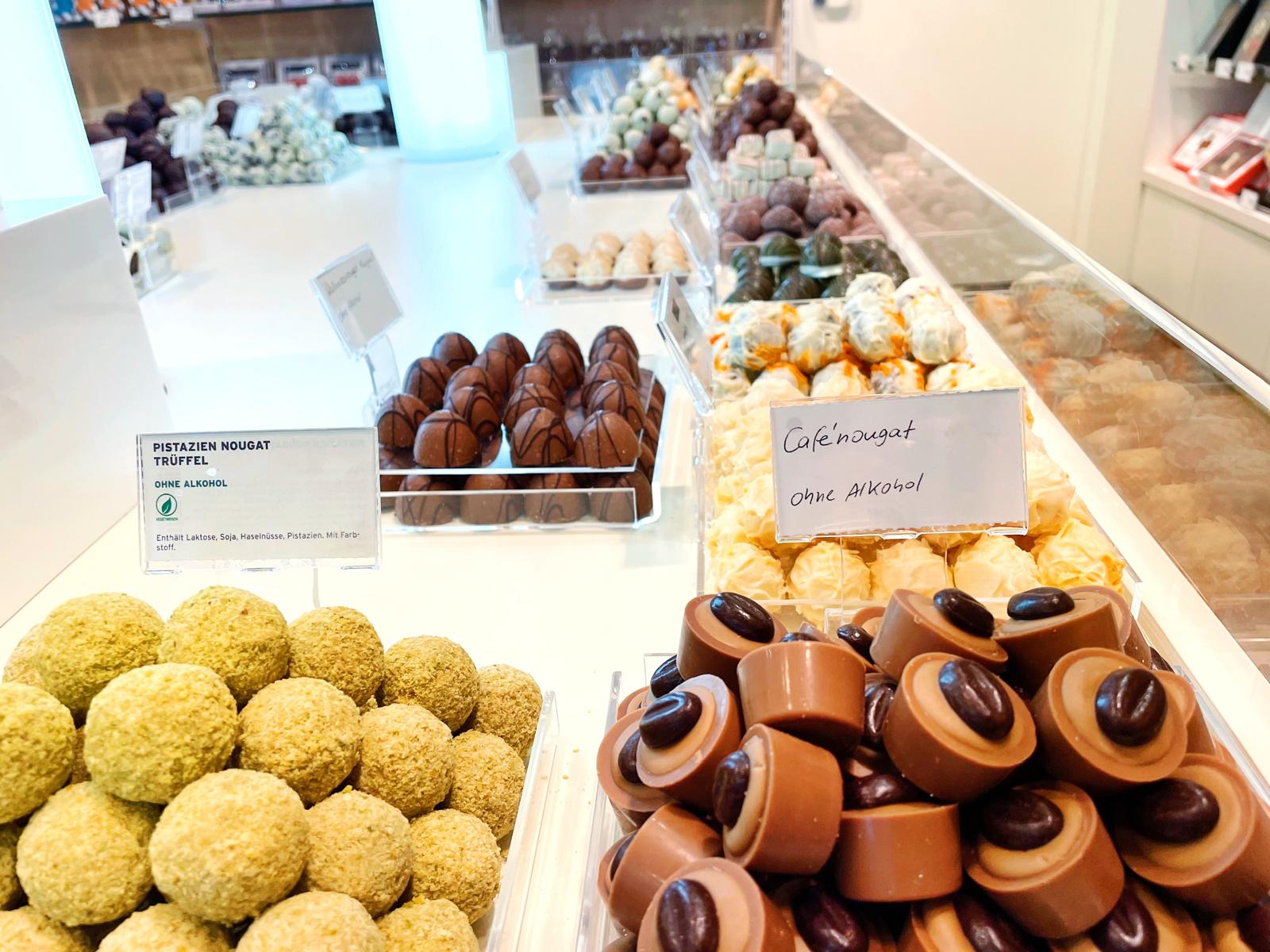 Продавець солодощів з усього світу одразу біля станцій метро та міської електрички Бундесплатц у Вільмерсдорфі. Окрім смачних праліне (Caffarel, Dolfin, Majani, Venchi та інших виробників), свіжих пирогів, гарячого шоколаду, джемів, органічних фруктових соків, можна придбати сувеніри, листівки, кулінарні книги та навіть красиво їх упакувати.