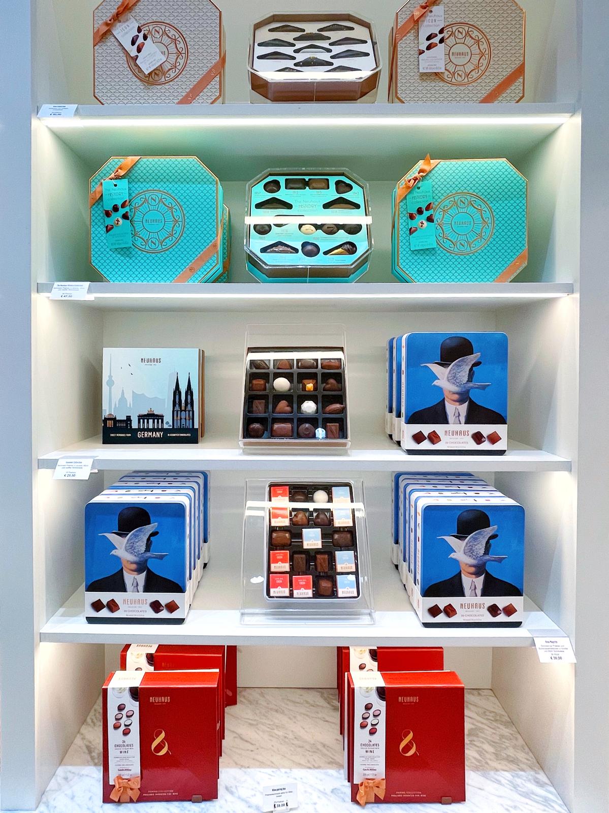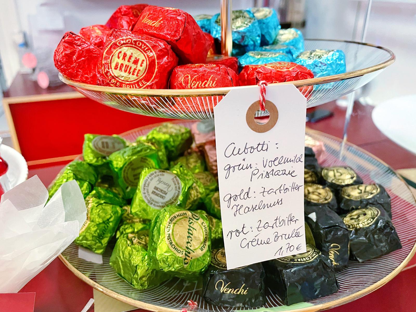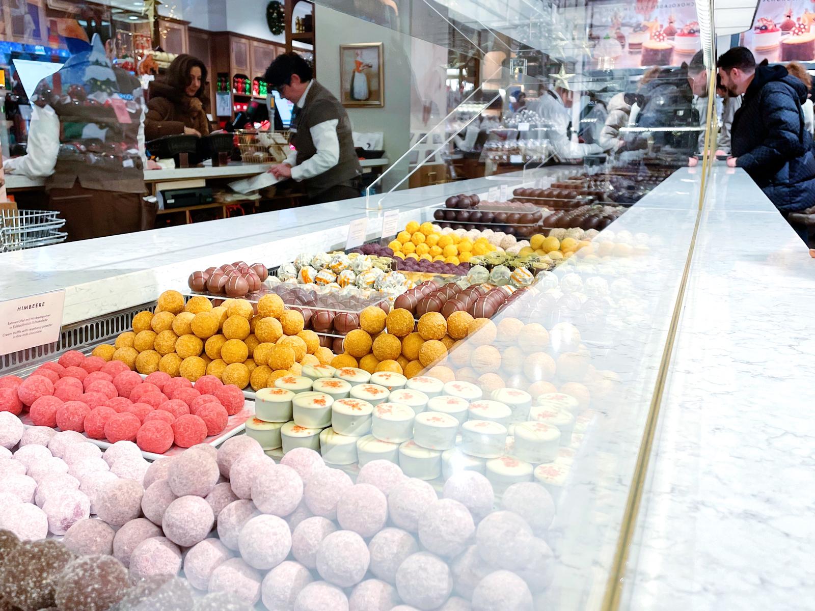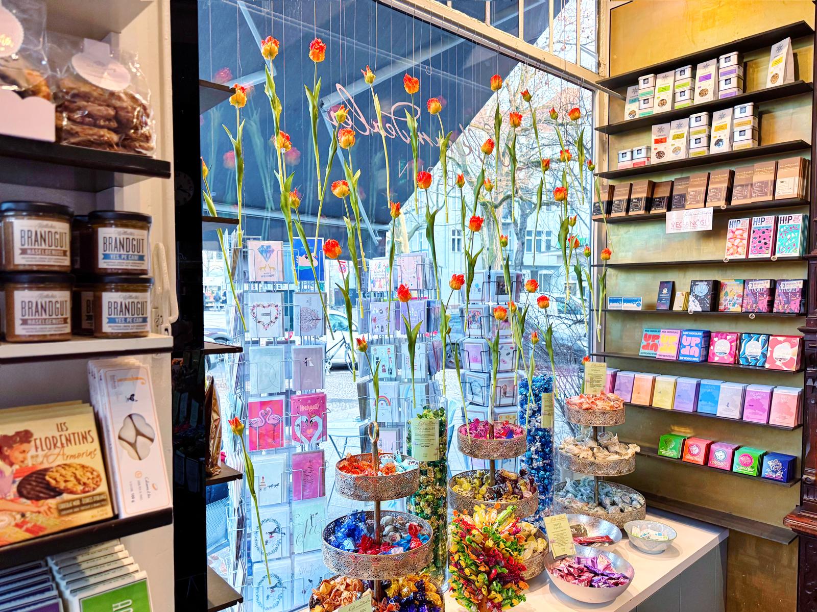 Продавець солодощів з усього світу одразу біля станцій метро та міської електрички Бундесплатц у Вільмерсдорфі. Окрім смачних праліне (Caffarel, Dolfin, Majani, Venchi та інших виробників), свіжих пирогів, гарячого шоколаду, джемів, органічних фруктових соків, можна придбати сувеніри, листівки, кулінарні книги та навіть красиво їх упакувати.