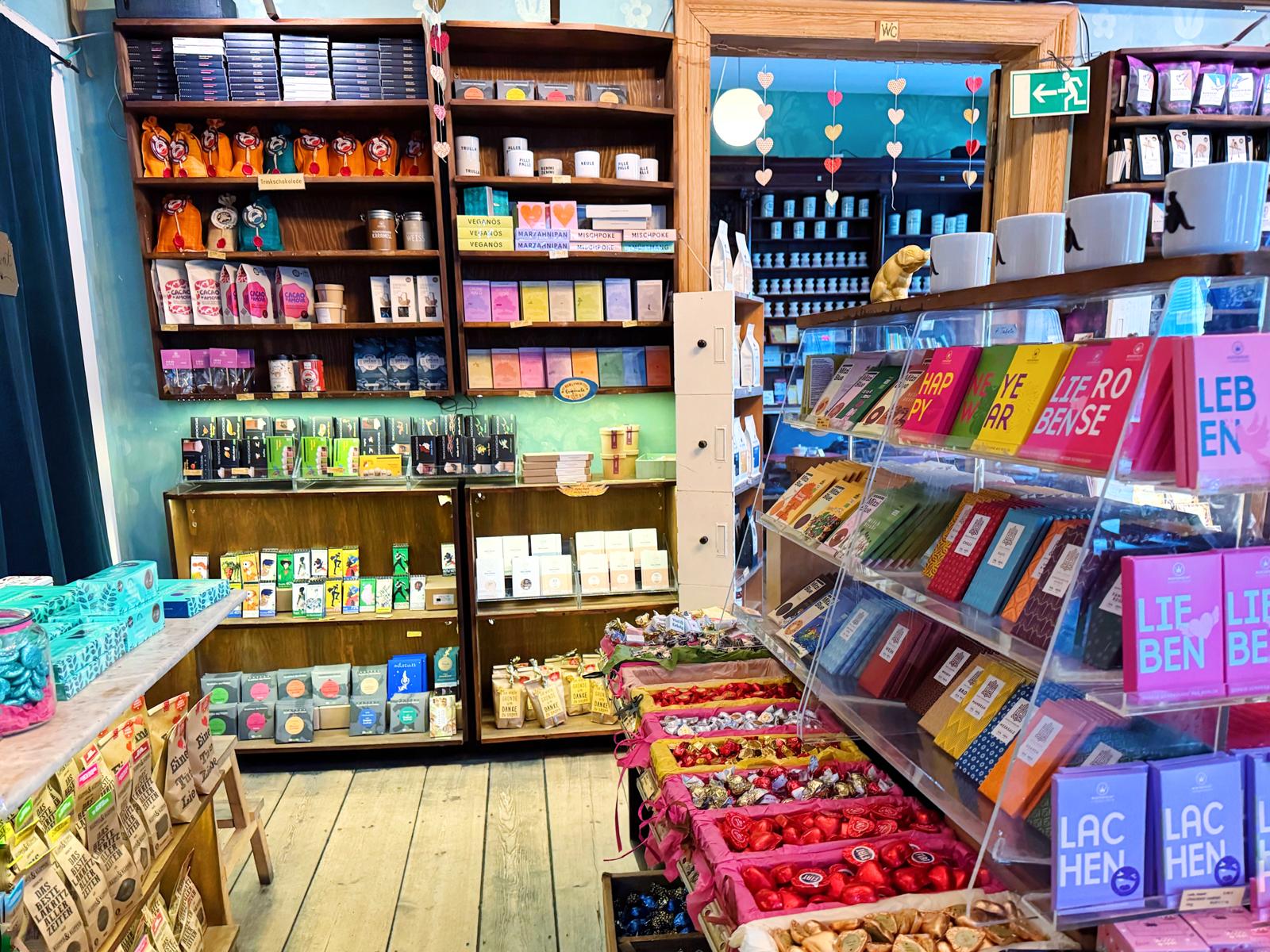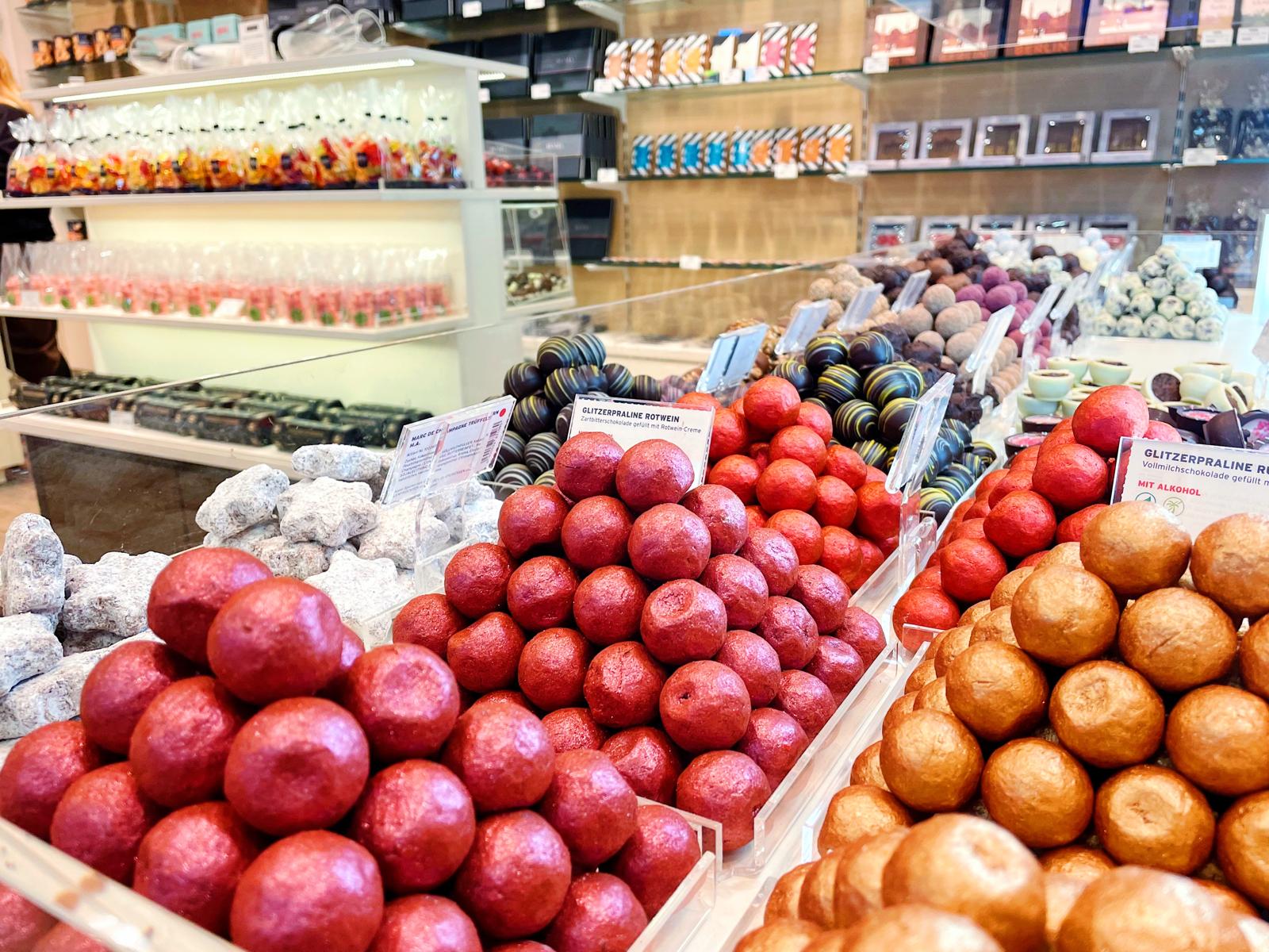 Продавець солодощів з усього світу одразу біля станцій метро та міської електрички Бундесплатц у Вільмерсдорфі. Окрім смачних праліне (Caffarel, Dolfin, Majani, Venchi та інших виробників), свіжих пирогів, гарячого шоколаду, джемів, органічних фруктових соків, можна придбати сувеніри, листівки, кулінарні книги та навіть красиво їх упакувати.