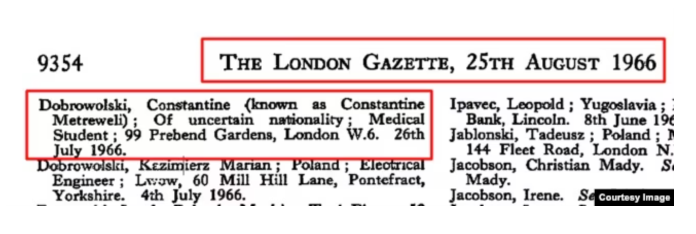 Але в архівах не було документів про подальшу долю подружжя Добровольських після Другої світової війни. Також немає даних, яким чином Костянтин Добровольський потрапив до Великої Британії та чому змінив прізвище на Метревелі. Він служив у британській армії, здобув освіту в Оксфорді та Кембриджі, став відомим лікарем-радіологом і навіть очолював інститут у Гонконзі. У виданні The London Gazette за серпень 1966 року повідомляється, що британське громадянство отримав студент-медик Костянтин Добровольський, також відомий як Костянтин Метревелі. Також зазначається, що його національність не визначена.