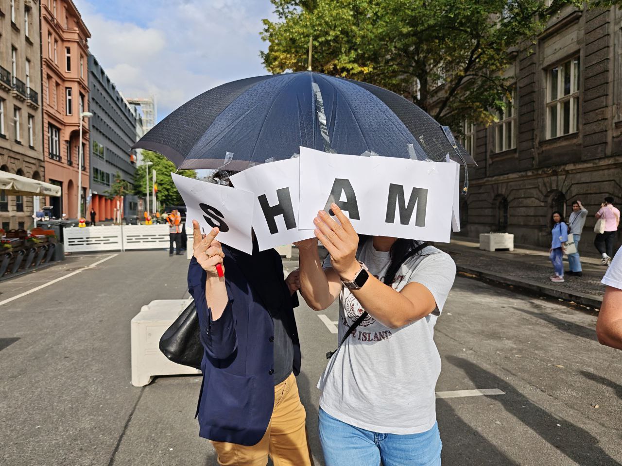 Протестувальники вигукували німецькою та англійською “Ганьба”, “Жодної сцени для прихильниці Путіна”, “Росія – терористична держава” тощо. Ведучі проголошували, що надавати сцену прихильниці Путіна – ганебно, що культура – це теж політика. Розповідали німецькою, як Нетребко приймала нагороди з рук очільника держави-агресорки, як у 2012 році публічно підтримала Путіна на президентських виборах, як жертвувала гроші для ДНР.