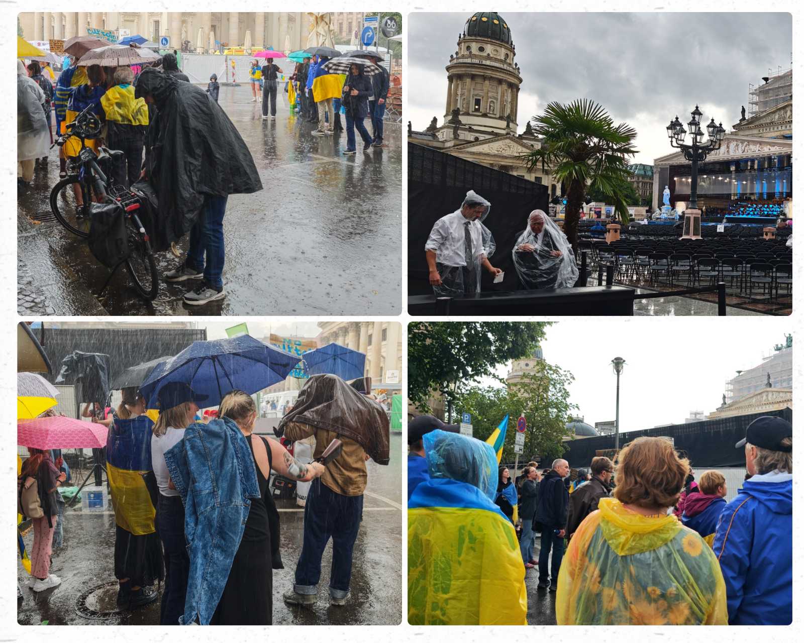 Протестувальники сподівалися, що злива, яка почалася за годину до концерту змусить організаторів фестивалю і у цей день відмовитися від своїх планів. На жаль, сильний дощ тривав не довго. Проте гучномовці не замовкали.