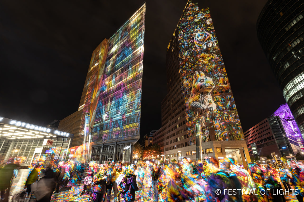 Особливо барвисто буде навколо Потсдамер Плац. Уперше можна буде побачити проєкції на вежі Колльгофф.