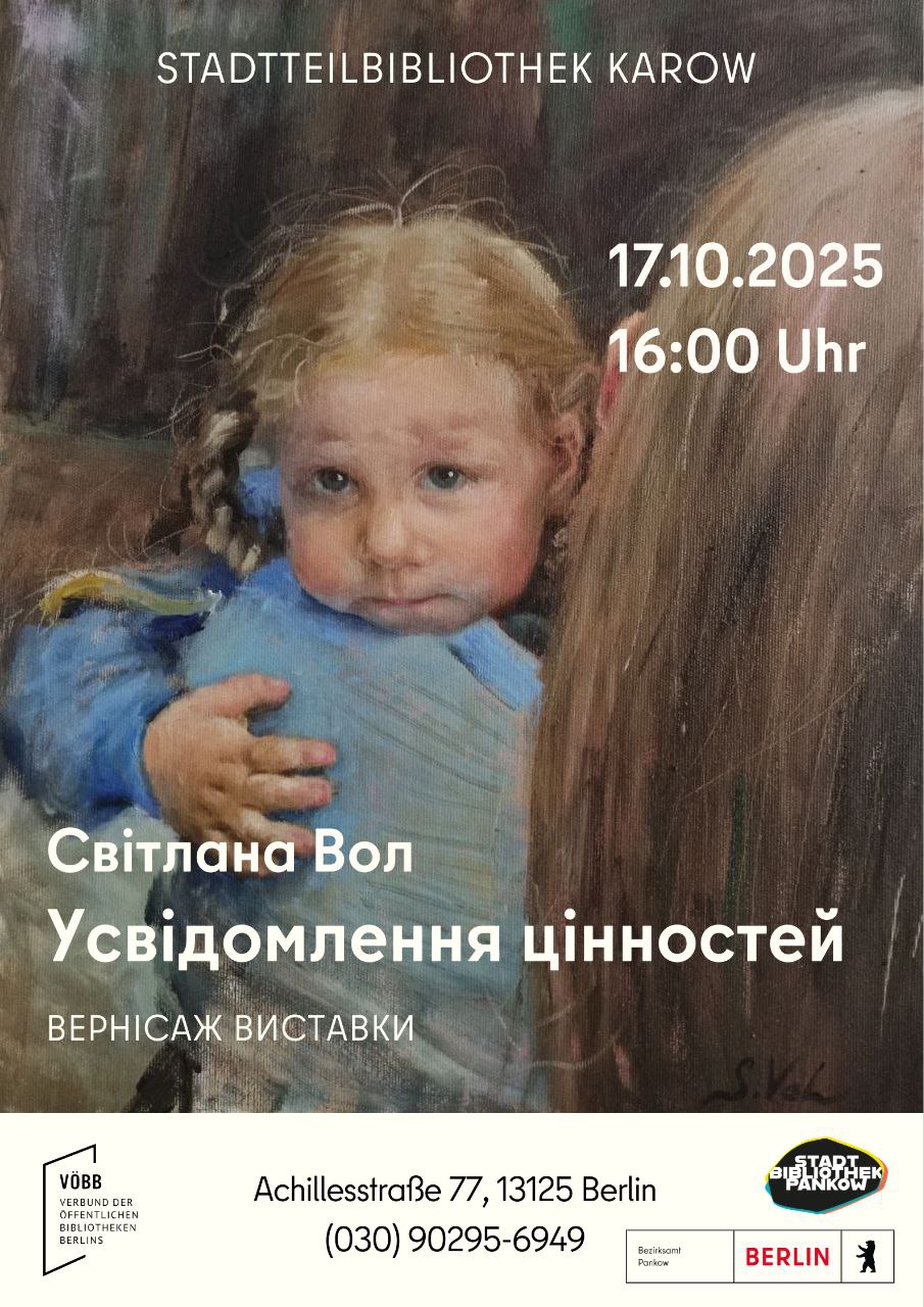 З найближчих цікавих заходів – вернісаж виставки “Усвідомлення цінностей” української художниці Світлани Вол у п’ятницю, 17 жовтня, о 16:00.